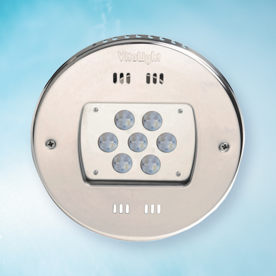 VitaLight® 8/4er POWER LED 3.0 Scheinwerfereinsatz für den Einbau in alle Beckenarten, hervorragend geeignet zur Ausleuchtung von kleineren privaten Pools. Technische Daten: Leistung: 23 W, Abstrahlwinkel 120°, Spannung 24 V Lichtstrom in Lumen: 4300 lm (6000 K); 3700 lm (3000 K) und 3000 lm (RGBW)